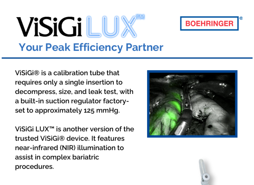 ViSiGi LUX™ is another version of the trusted ViSiGi® device. It features near-infrared (NIR) illumination to assist in complex bariatric procedures.