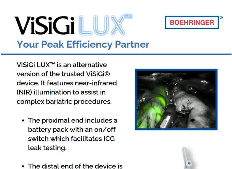 ViSiGi LUX™ is an alternative version of the trusted ViSiGi® device. It features near-infrared (NIR) illumination to assist in complex bariatric procedures.